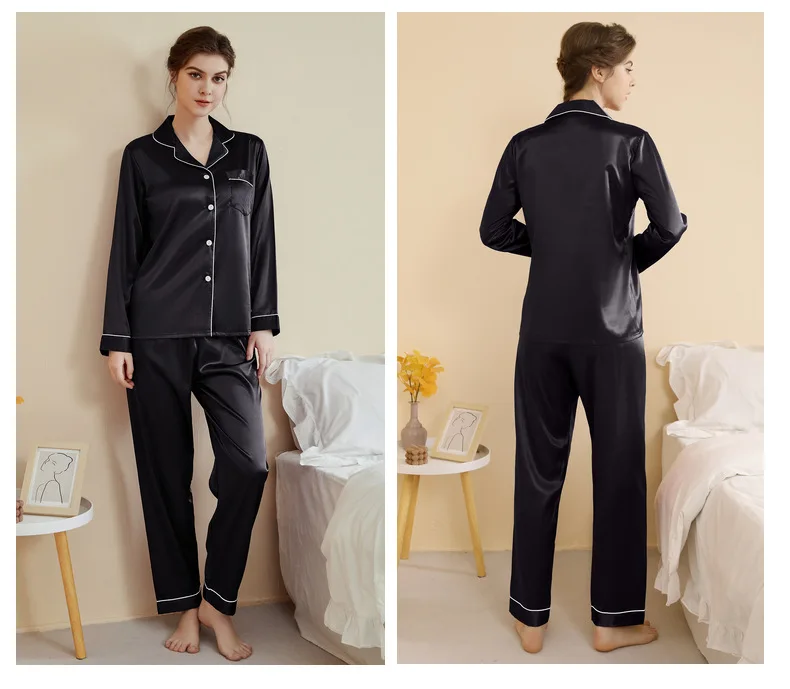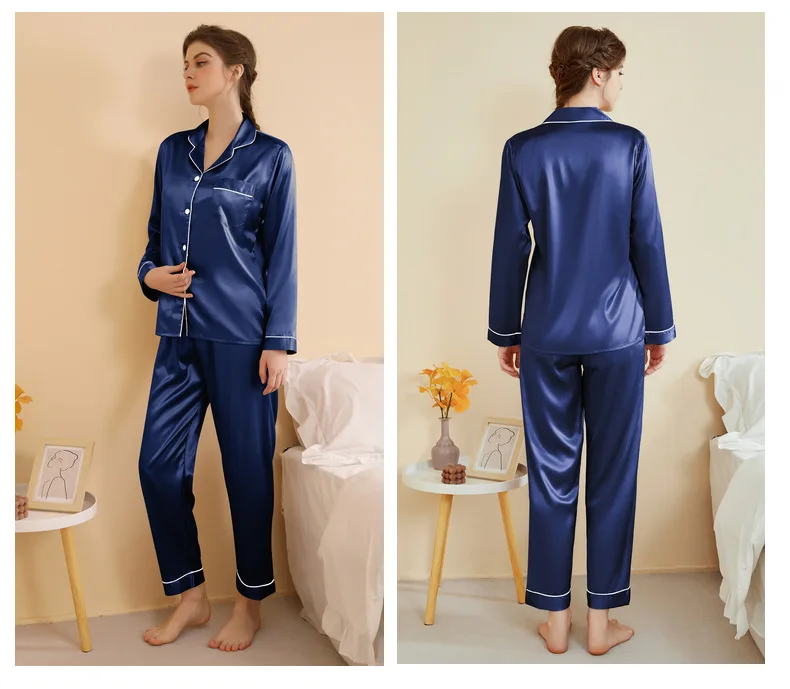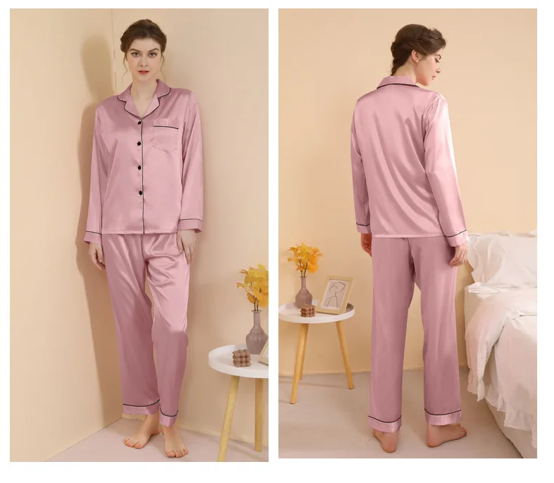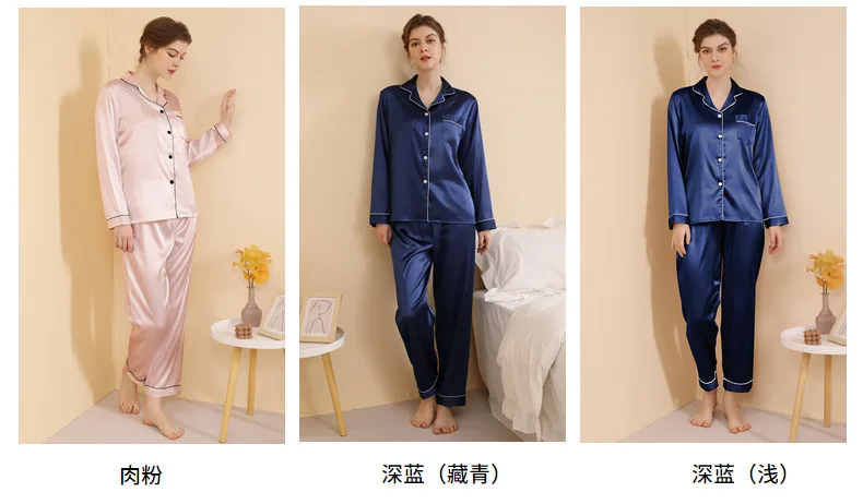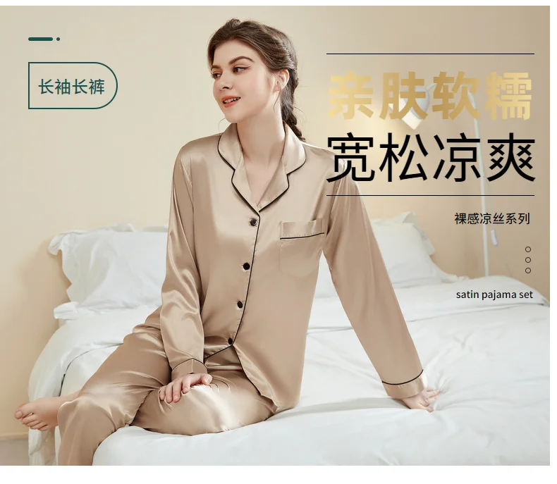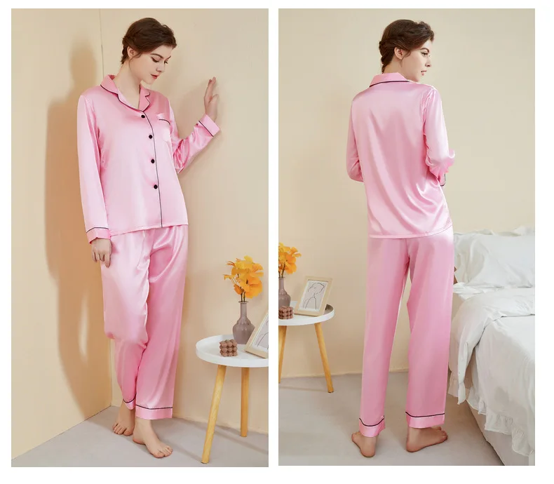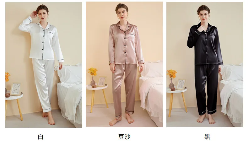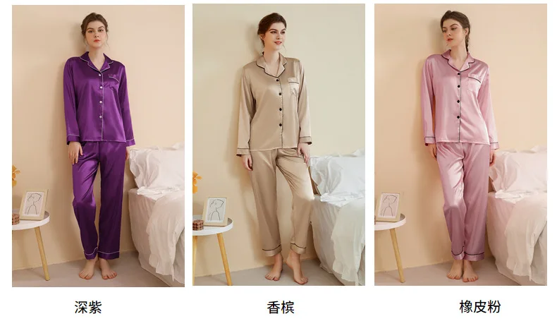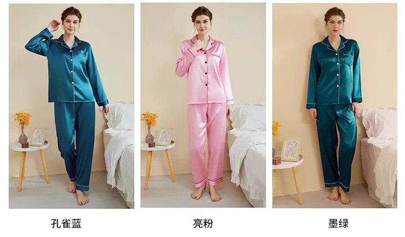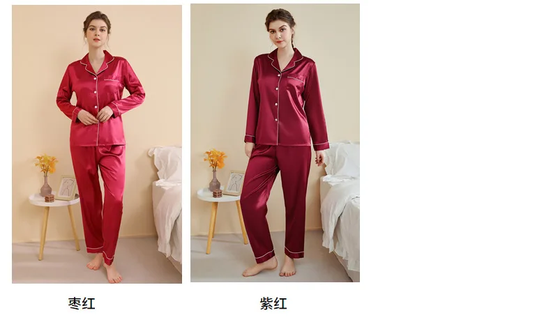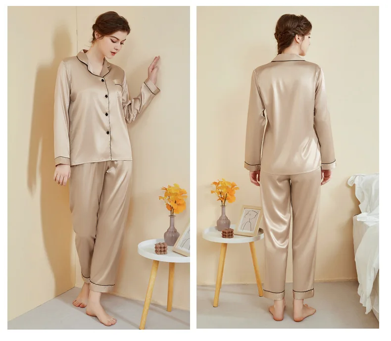 Plus Size Autumn and Winter Silk Pajamas Women Tops and Pants Solid Casual Soft Nightwear Buttons Cardigan Sleepwear Homewear