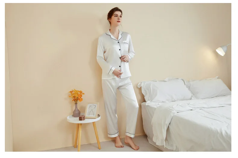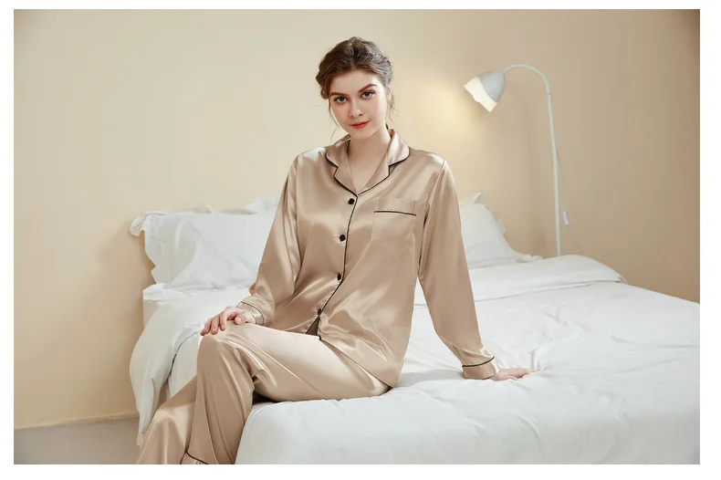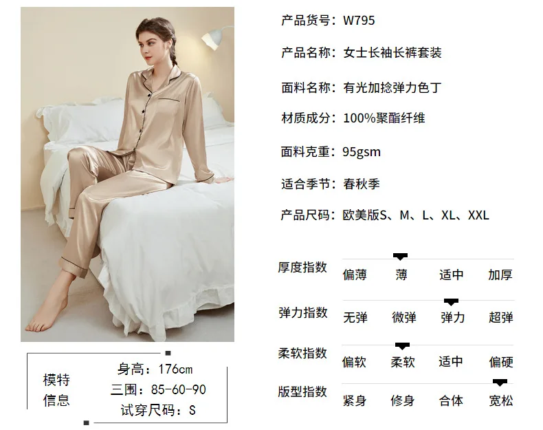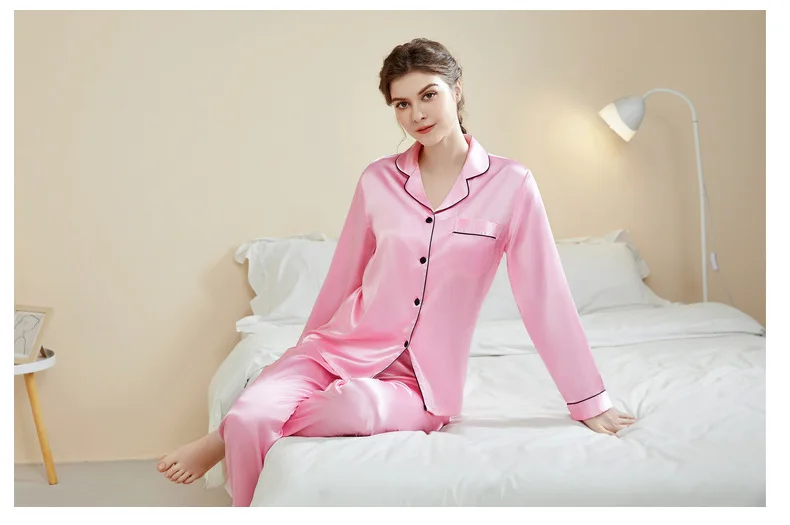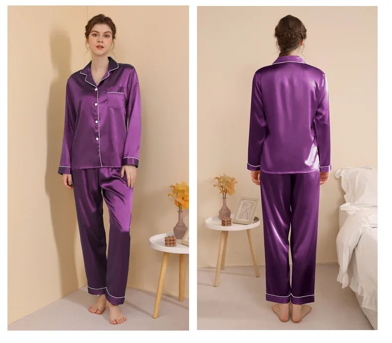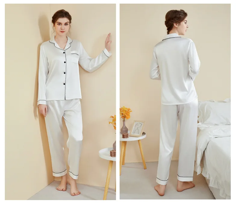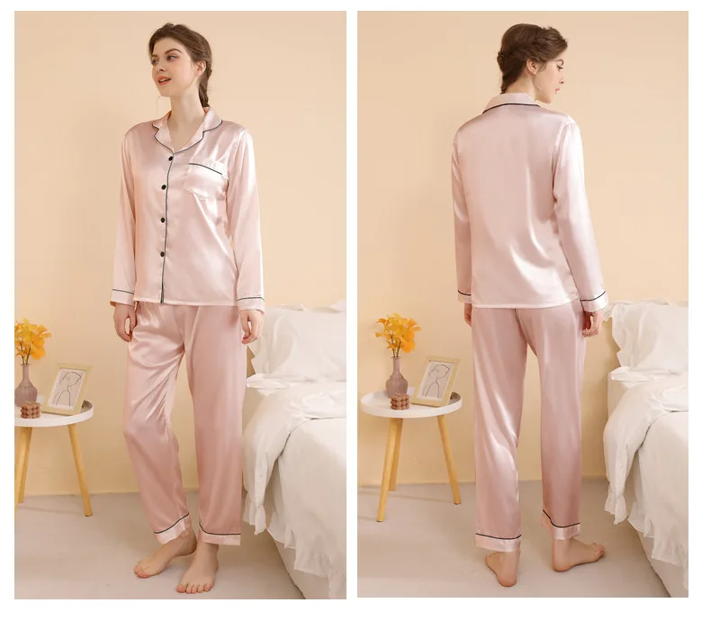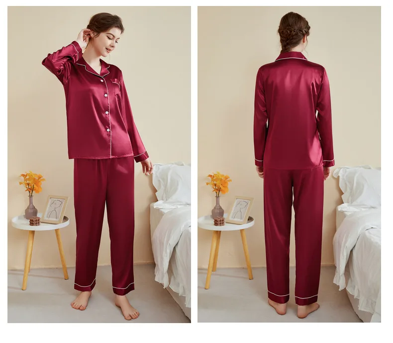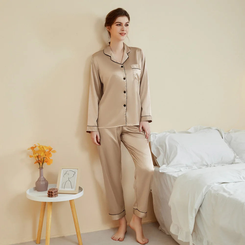 Plus Size Autumn and Winter Silk Pajamas Women Tops and Pants Solid Casual Soft Nightwear Buttons Cardigan Sleepwear Homewear
